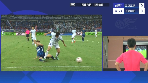 08月31日讯 申花vs三镇比赛第39分钟,特谢拉踩踏邓涵文脚踝,裁判在观看VAR后表示够不上红牌标准,对特谢拉出示黄牌。